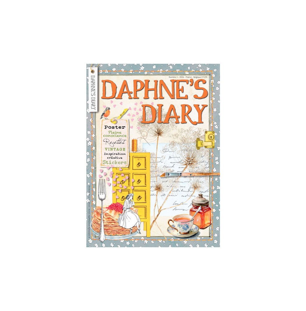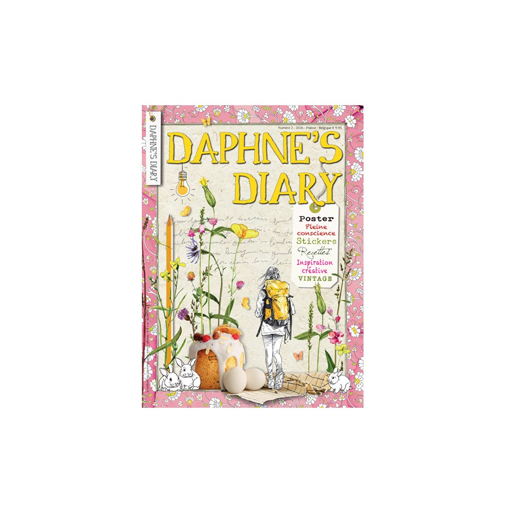 Mon nom est Daphné et DAPHNE'S DIARY est mon journal sous la forme d'un magazine. Je vous invite dans mon monde de la création des maisons et des jardins, la cuisine, Voyage, de l'artisanat et des commerces. Je vais vous dire ce qui m'intéresse pour - les expériences que vous pouvez identifier avec et qui forment une source d'inspiration. Chaque édition du Journal de Daphné est une surprise. Ce journal magazine est produit à partir de 4 types de papier et comprend des éléments supplémentaires, tels que des autocollants, des cartes et des choses à plier, coller et couper vous-même.